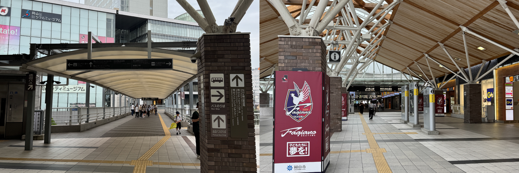 リットシティビルは、JR岡山駅と東西連絡橋を通じて屋根付き通路で直結。